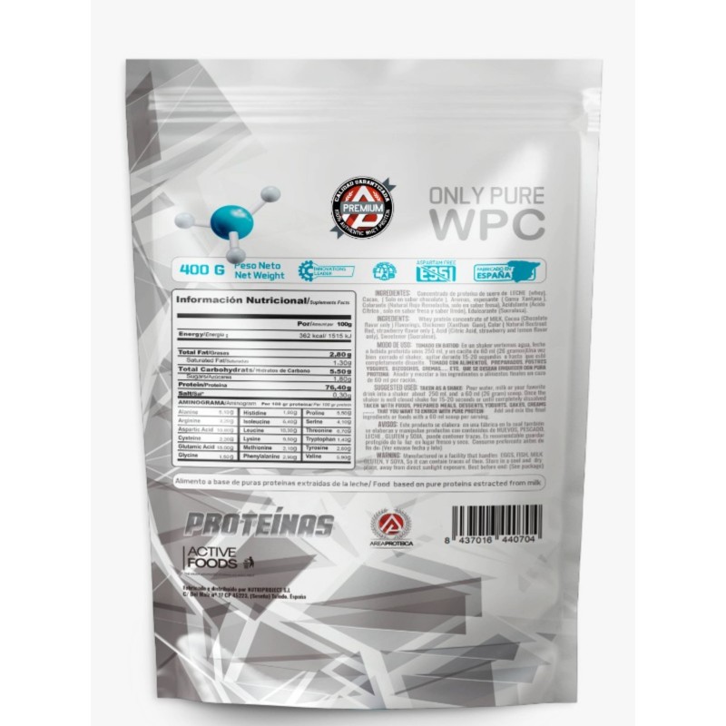 ONLY PURE WPC es una proteína excelente, está formulada con solo Whey de la más calidad. Diseñada para una toma de pura proteína concentrada y muy muy ligera, se disuelve en muy poca agua y tiene una digestión rápida y como decimos ligera, que la hace ideal para la reposición proteica de nuestro físico ante el deporte o requerimientos extra en nuestra dieta. Su sabor es excelente. Todo ello convierte a esta proteína en un producto sobresaliente.